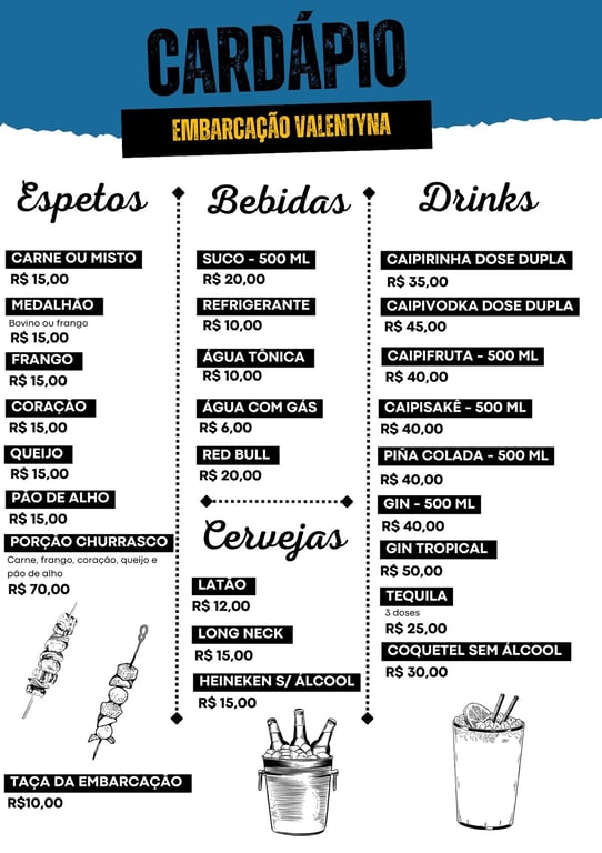 🍽️ Venda de petiscos, bebidas e drinks à bordo